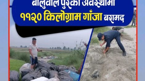 सुनसरी, २१ जेठ । सुनसरी प्रहरीले खोला बगरमा बालुवाले पुरेको अवस्थामा ११ क्विन्टल भन्दा बढी गाँजा बरामद गरेको छ । सुनसरीको हरिनगर गाउँपालिका-५ र ६...