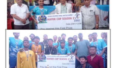 कञ्चनरूप, ६ चैत । सप्तरीको कञ्चनरूप नगरपालिकामा जारी नगरस्तरीय दोस्रो मेयर कप फुटबल प्रतियोगिताको उपाधि कञ्चनरूप वडा नं. १२ ले जितेको छ । कञ्चनरुप-३...