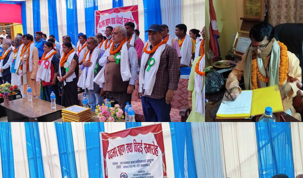 निवर्तमान नगर प्रमुख र उप प्रमुख क्रमशः मिश्र र पोखरेललाई कदर पत्र प्रदान गरिएको छ । १२ वटै वडाका निवर्तमान वडाअध्यक्ष र सदस्यहरुलाई नगर प्रमुख गुप्ताले गम्छा ओढाएर स सम्मान विदाई गर्नुभएको छ ।