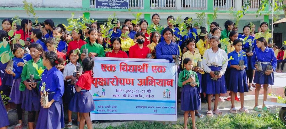 मानव अधिकार समूहका अध्यक्ष जितनारायण चौधरीको अध्यक्षतामा भएको कार्यक्रममा टिक, मसला, अम्बा, अमला, सिसौ जातका २ सय ५० थान विरुवा बालबालिकाहरुले घरघरमा रोपेका छन् ।