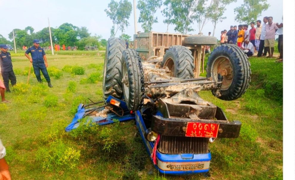 लौनियाबाट माटो भरी दमावतीतर्फ जाँदै गरेको स १ त ६७०० नम्बरको ट्याक्टर अनियन्त्रित भई पल्टिँदा स्थानीय ललित देव साहको ३८ वर्षीय छोरा देवेन्द्र प्रसाद साहको मृत्यु भएको प्रहरीले जनाएको छ ।