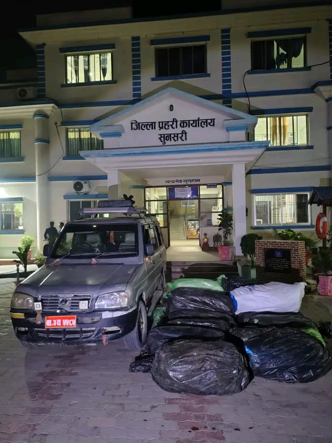 मंगलबार जिल्ला प्रहरी कार्यालय सुनसरीबाट प्रहरी उपरीक्षक केशव कुमार थेवेको कमाण्डमा खटिएको प्रहरी टोलीले सडक छेउमा रोकी राखेको बा. ३ च ५५८५ नम्बरको स्कारपियो गाडीलाई संका लागी चेकजाँचको क्रममा गाडी भित्र उक्त परिमाणको गाँजा फेला परेको हो ।