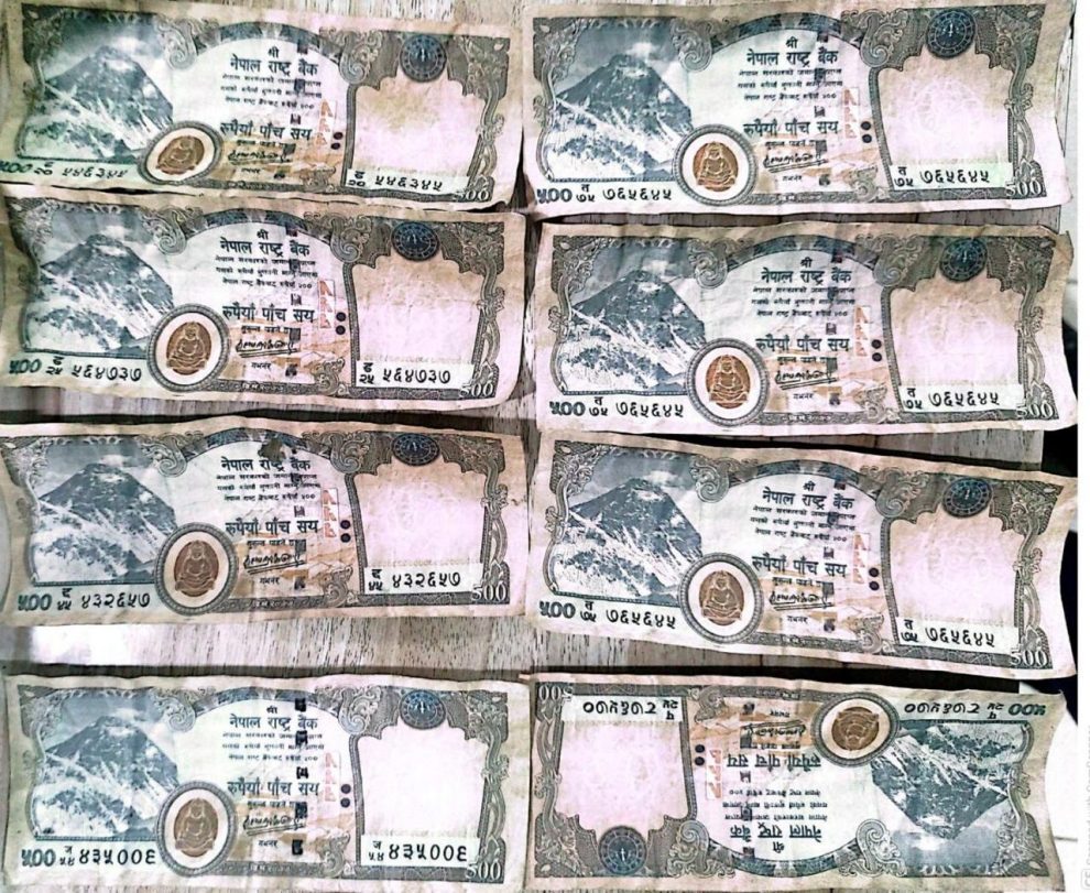 शरीर खानतलासी गर्दा मियाको साथबाट ५०० दरका ८ थान नक्कली नेपाली रुपैयाँ बरामद गरिएको प्रहरीले जनाएको छ ।