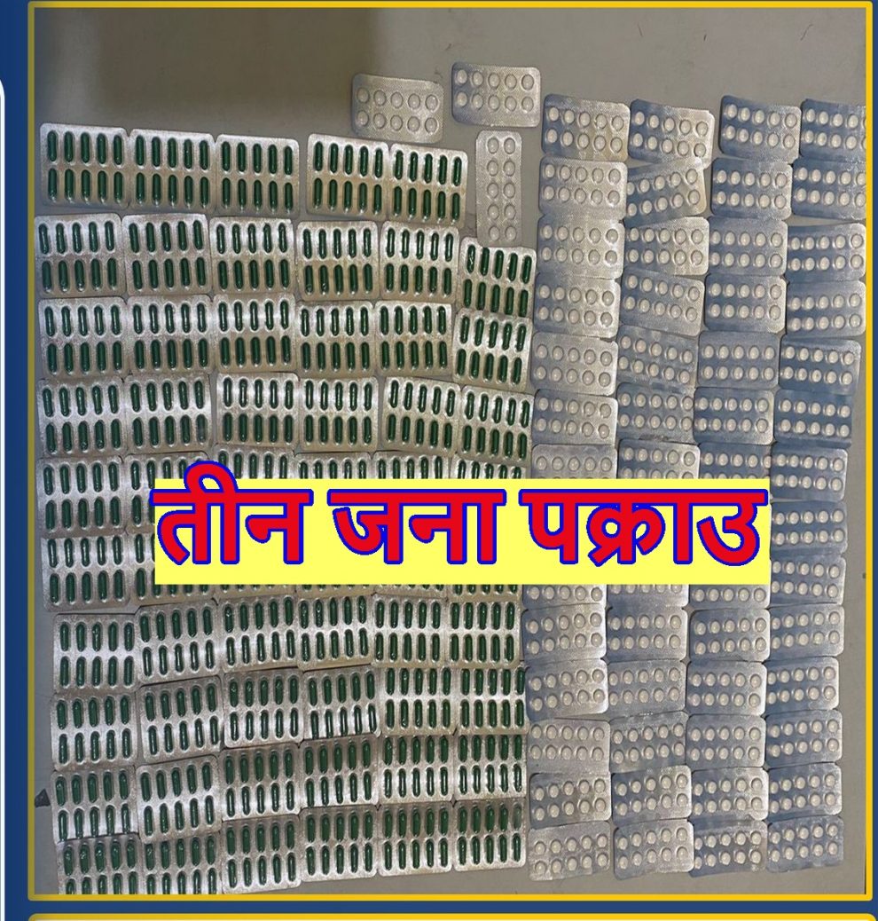 प्रतिबन्धित औषधी र ब्राउन सुगरसहित तीन जना पक्राउ