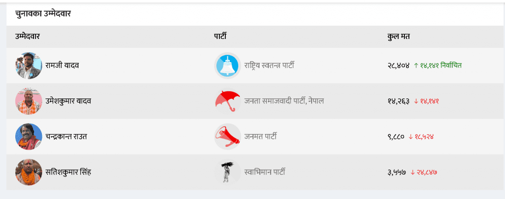 कञ्चनरुप, २४ फागुन । प्रतिनिधि सभा निर्वाचन अन्तर्गत सप्तरी निर्वाचन क्षेत्र नम्बर २ मा राष्ट्रिय स्वतन्त्र पार्टी (रास्वपा) का रामजी यादव विजयी भएका छन्। उनले जनमत पार्टीका अध्यक्ष डा. सीके राउतलाई स्तब्ध तुल्याउँदै उल्लेखनीय जित हात पारेका हुन्।