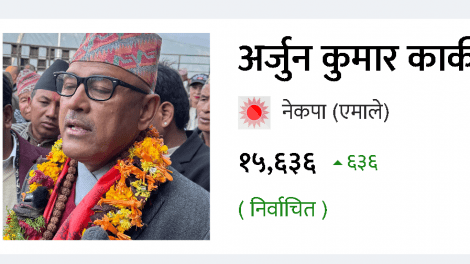 संखुवासभा । प्रतिनिधिसभा सदस्य निर्वाचनअन्तर्गत संखुवासभा निर्वाचन क्षेत्र नम्बर १ मा नेकपा एमालेका उम्मेदवार अर्जुनकुमार कार्की विजयी भएका छन्।कार्कीले १५...