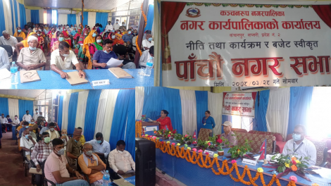 कञ्चनरुप , २९ असार । सप्तरीको कञ्चनरुप नगरपालिकाको सोमबार नगरपालिकाको सभाहलमा बसेको पाँचौं नगर सभाबाट आर्थिक वर्ष २०७८/०७९ को निति तथा कार्यक्रम र...