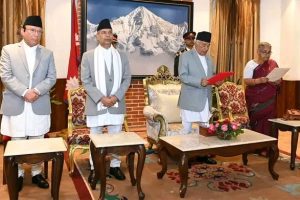 काठमाडौँ । राष्ट्रपति रामचन्द्र पौडेलसमक्ष नवनियुक्त प्रधानमन्त्री सुशीला कार्कीले पद तथा गोपनीयताको शपथ ग्रहण गर्नुभएको छ । राष्ट्रपति कार्यालय शीतल...