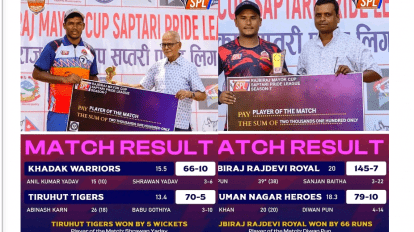कञ्चनरूप, ७ कार्तिक । सप्तरीमा बिहीबार बिहान घाँस काट्ने क्रममा रुखबाट लडेर एक जनाको मृत्यु भएको छ । सप्तरीको सप्तकोसी नगरपालिका वडा नम्बर २...