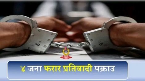 कञ्चनरूप , ३ मंसिर । सप्तरी प्रहरीले विभिन्न मुद्दाका चार जना फरार प्रतिवादीलाई पक्राउ गरेको छ । पक्राउ पर्नेमा राजविराज नगरपालिका वडा नम्बर ७ का...