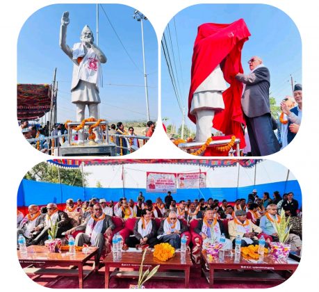 नेपाली काँग्रेसका नेता शेखर कोइरालाद्वारा विपि कोइरालाको पूर्ण कदको शालिक अनावरण