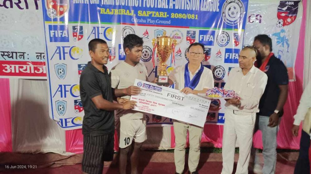 खगेन्द्र कार्की / फत्तेपुर, २ असार । सप्तरीको को सप्तकोसी नगरपालिका ८ ओद्राहा मा जारि एन्फा सप्तरी जिल्ला लिग फुटबल प्रतियोगिता २०८१ को उपाधि सप्तकोसी नगरपालिका ८ मा रहेको प्रोग्रेसिभ युवा क्ल्ब ओद्राहाले चुमेको छ ।ओद्राहा खेलमैदानमा शनिबार सम्पन्न फाइनल खेलमा हिरोज स्पोर्ट्स क्ल्ब...