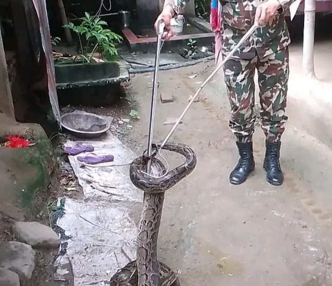 कञ्चनरूप, २० साउन । सप्तरीको कञ्चनरूप नगरपालिकामा मंगलबार दुई मिटर लामो दुर्लभ अजिङ्गर फेला परेको छ । कञ्चनरूप नगरपालिका–२ बरमझिया बस्ने दिगम्बर झाको घरमा दुई मिटर लम्बाइ भएको आठ किलोबराबरको दुर्लभ अजिङ्गर फेला परेको हो । अजिङ्गरको उद्धार गरी कोशी टप्पु वन्यजन्तु आरक्षमा छोडिएको छ...