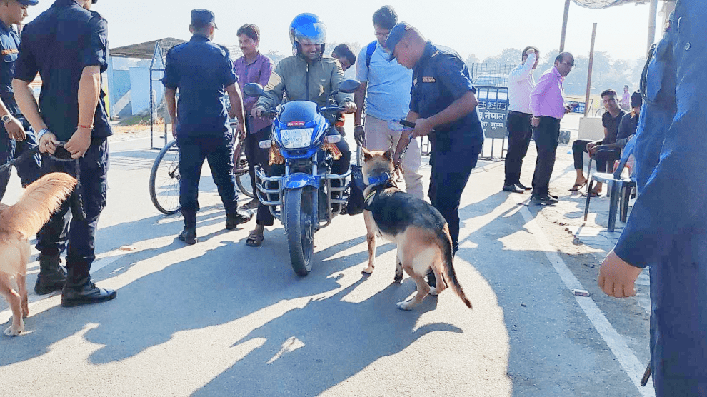 बिराटनगर, १२ कार्तिक । झापाको भद्रपुर स्थित सिमा नाकामा तालिम प्राप्त कुकुर सहितको प्रहरी टोलीद्वारा कडाईका साथ चेकजाँच सुरु गरिएको छ ।कोशी प्रदेश प्रहरी कार्यालय बिराटनगरको चाडपर्व लक्षित सुरक्षा योजना अनुसार सिमावर्ती क्षेत्र इलाकाहरुमा प्रहरी परिचालन गरी तालिम प्राप्त कुकुर सहित कडाइका...