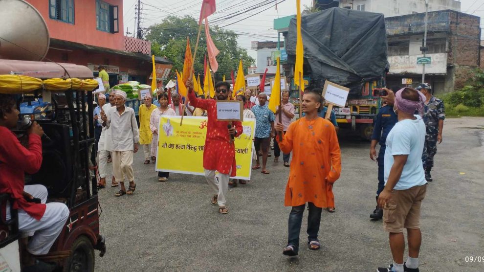 खगेन्द्र कार्की / सप्तकोसी, २३ भदौ । सप्तरीको सप्तकोसी नगरपालिकामा गौ वंश हत्या विरुद्ध शान्तिपुर्ण बिरोध प्रदर्शन गरेका छन् । ॐ कार परिवार सप्तकोसीले मरे बलिदान बाचे स्वाभिमान गौ संरक्षण हाम्रो अभियान भन्ने मुल नाराकासाथ गौ हत्या विरुद्ध सप्तकोसीमा शनिबार बिरोध प्रदर्शन गरेको हो...