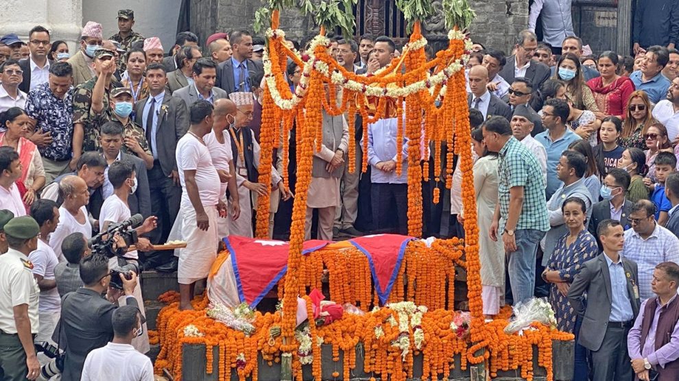 काठमाडौं । प्रधानमन्त्री पुष्पकमल दाहाल ‘प्रचण्ड’ पत्नी सीता दाहालको राजकीय सम्मानका साथ अन्त्येष्टि गरिएको छ ।मन्त्रिपरिषद्को आजको बैठकले राजकीय सम्मानस्वरुप नेपाली सेनाको दुई सेनामुख, स्कर्टपति सहसेनानीको एक टुकडीद्वारा सलामी दिने व्यवस्था मिलाउने निर्णय गरेको थियो ।दाहालको पार्थिक...
