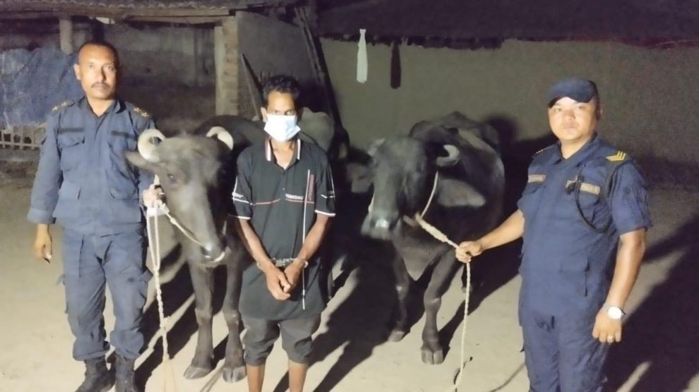 धनुषा । धनुषामा दुई वटा भैंसी चोरी गरेको आरोपमा एक जना पक्राउ परेका छन् । पक्राउ पर्नेमा धनुषाको मिथिला विहारी नगरपालिका ७ तारापट्टीका ३७ वर्षीय बलि मुखिया रहेका छन् ।प्रहरीले सोमबार राति १० बजे भैंसीलाई पैदल हिँडाएर जनकपुर तर्फ लगिरहेको अवस्थामा फेला पारी पक्राउ गरेको हो।उक्त दुई वटा...