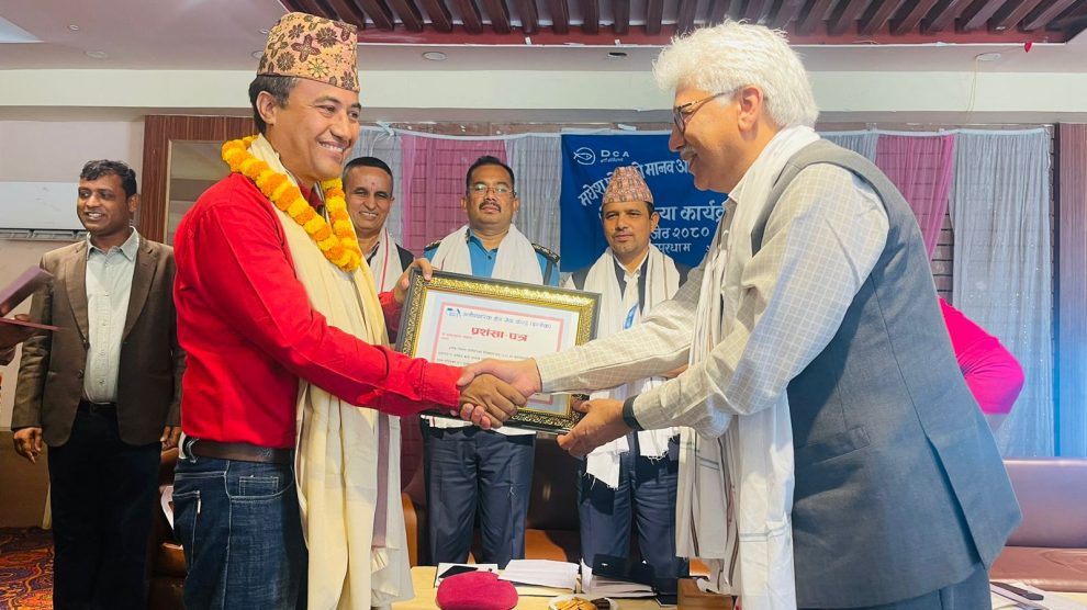 सप्तरी, २१ जेठ । सप्तरी जिल्लामा रहेर मानव अधिकारको अभिलेख, प्रसार र पीडितको न्यायका लागि काम गर्दै आएका मनोहर पोखरेल पुरस्कृत भएका छन । आइतबार जनकपुरमा इन्सेकले उत्कृष्ठ प्रतिनिधिका रुपमा पोखरेललाई नगद पुरस्कार र प्रमाणपत्रसहित पुरस्कृत गरेको हो ।कार्यक्रममा प्रमुख अतिथि मधेस प्रदेशसभाका...