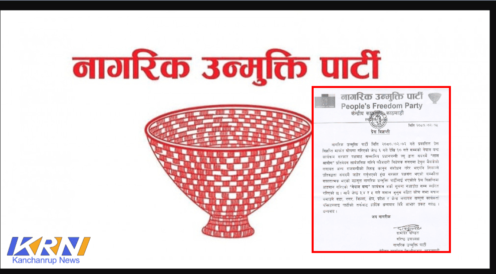 काठमाडौं । रेशम चौधरीको नागरिक उन्मुक्ति पार्टीले भोलि देखि १० गते सम्म गर्ने भनेको नेपाल बन्द तत्कालको लागि फिर्ता लिएको छ।प्रधानमन्त्रीले संसदमा लाल आयोगको प्रतिवेदन सार्वजनकि गरिने फौजदारी विधेयक संसदमा टेबल भइसकेको जानकारी दिएको भन्दै शुक्रबार पार्टीका वरिष्ठ उपाध्यक्ष दामोदर...