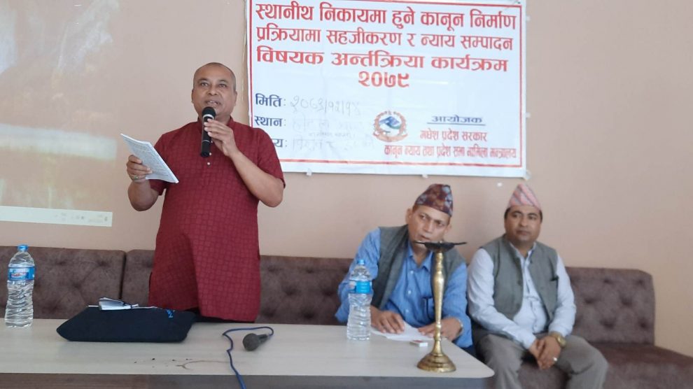 राजविराज, १४ चैत । मधेश प्रदेशका कानुन, न्याय तथा प्रदेशसभा मामिला मन्त्री राज कुमार लेखीले चाँडै चाँडै सरकार फेर बदल हुने गर्नाले काम गर्न पनि विलम्ब हुने कुरा बताउनु भएको छ । राजविराजमा मंगलबार कानुन न्याय तथा प्रदेशसभा मामिला मन्त्रालयले आयोजना गरेको स्थानीय निकायमा हुने कानुन निर्माण...