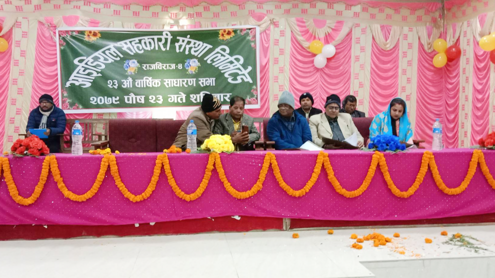 बृजमान तामाङ – राजबिराज, २३ पुस । आईडियल सहकारी संस्था लिमिटेड राजबिराज–४ को २३ औं वार्षिक साधारण सभा सम्पन्न भएको छ । संस्थाका अध्यक्ष गणेश कुमार आशको अध्यक्षतामा शनिवार आयोजित एक समारोहका विच बार्षिक साधारणसभा सम्पन्न भएको हो । राजबिराज स्थित जिल्ला समवन्य समितिको सभा हलमा आयोजित...