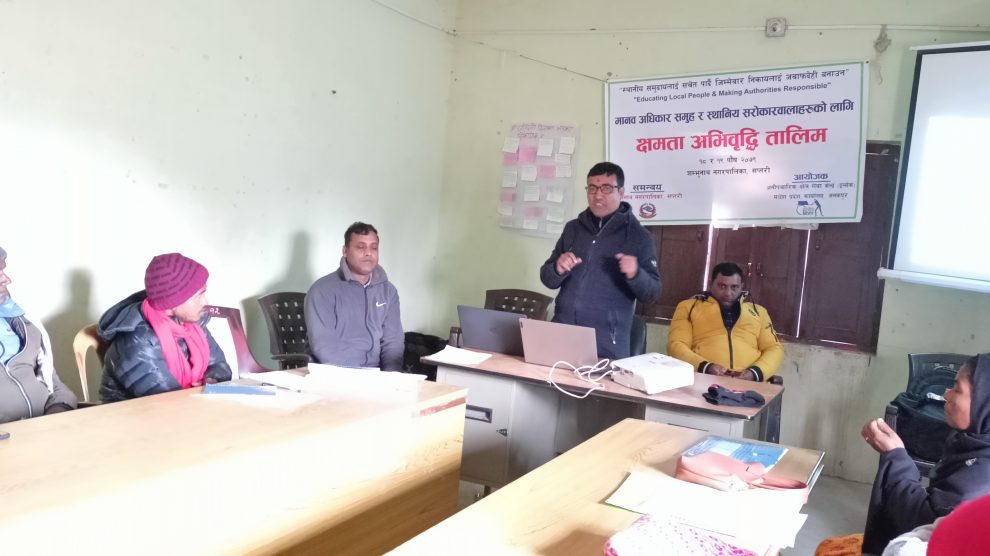 राजविराज, पुस १९ गते । अनौपचारिक क्षेत्र सेवा केन्द्र मधेस प्रदेश कार्यालयको आयोजनामा शम्भुनाथ नगरपालिकामा मानवअधिकार समूहका सदस्य र सरोकारवालाहरूको लागि दुई दिने क्षमता अभिवृद्धि तालिम मंगलवार सम्पन्न भएको छ ।कार्यक्रमको समापन गर्नुहुँदै नगरपालिकाका नगर प्रमुख जितेन्द्र प्रसाद गुप्ता...