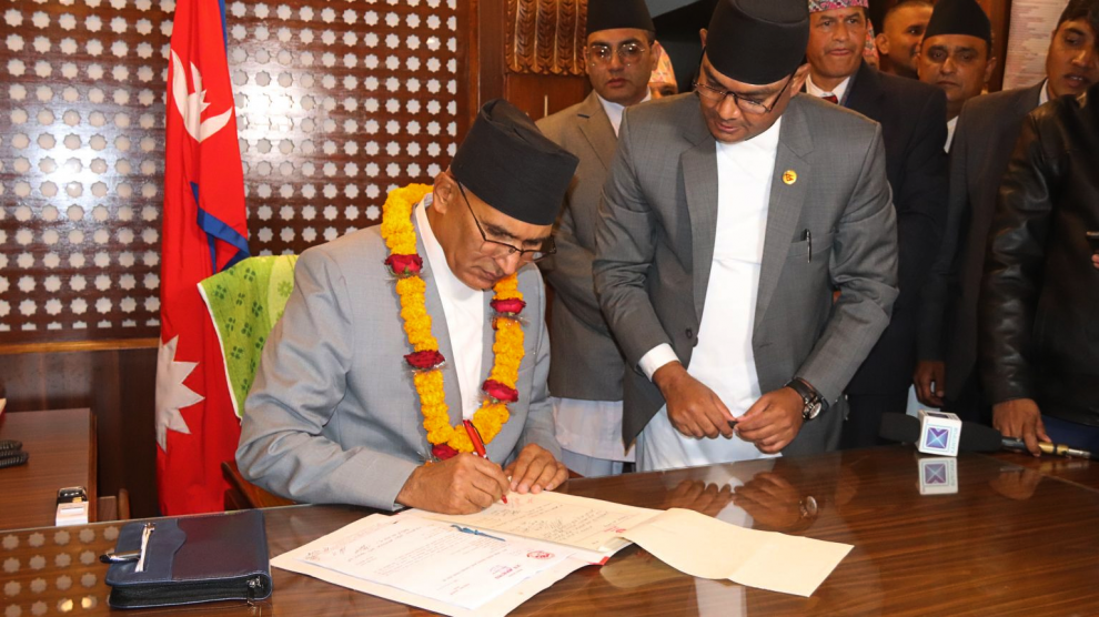 काठमाडौँ । नवनियुक्त उपप्रधान तथा अर्थमन्त्री विष्णुप्रसाद पौडेलले पदभार ग्रहण गरेका छन । सोमबार राष्ट्रपति कार्यालयमा शपथ ग्रहणपछि सिंहदरबारस्थित अर्थ मन्त्रालयमा पुगेर उनले पदभार ग्रहण गरेका हुन ।पदभार ग्रहणपछि पौडेलले सञ्चारकर्मीहरूसँग प्रतिक्रिया दिँदै सङ्कटको डिलमा रहेको...
