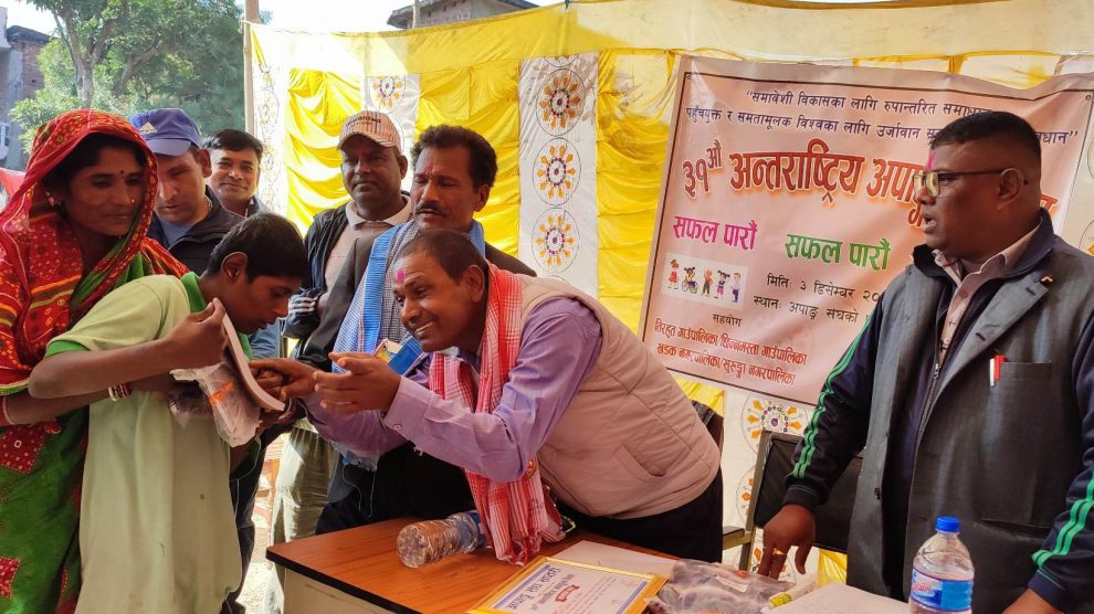 बृजमान तामाङ / राजविराज, १७ मंसिर । ३१ औं अन्तरास्ट्रिय अपाङ्गता दिबसको अबसरमा सप्तरीको राजविराज ५ मा शनिबार अपाङ्गता भएका व्यक्ति तथा बालाबालिकालाई सामाग्री तथा कपडा वितरण गरिएको छ । अपाङ्ग संघ सप्तरी र सगरमाथा अपाङ्ग कल्याण संघको आयोजनामा एक समारोहका विच फरक क्षमता भएका व्यक्तिहरुलाई...