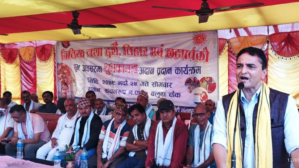 рдХрдЮреНрдЪрдирд░реБрдк (рд╕рдкреНрддрд░реА) ред рд╕рдкреНрддрд░реАрдХреЛ рдХрдЮреНрдЪрдирд░реБрдкрдорд╛ рдЖрдпреЛрдЬрд┐рдд рдХрд╛рд░реНрдпрдХреНрд░рдордорд╛ рдмреЛрд▓реНрджреИ рдиреЗрдХрдкрд╛ рдПрдорд╛рд▓реЗрдХрд╛ рдХреЗрдиреНрджреНрд░рд┐рдп рд╕рдЪрд┐рд╡ рдПрд╡рдореН рдкреВрд░реНрд╡ рдкрд░реНрдпрдЯрди рдордиреНрддреНрд░реА рдпреЛрдЧреЗрд╢ рднрдЯреНрдЯрд░рд╛рдИрд▓реЗ рдЖрдЧрд╛рдореА рдирд┐рд░реНрд╡рд╛рдЪрдирдкрдЫрд┐ рдиреЗрдХрдкрд╛ рдПрдорд╛рд▓реЗрд▓реЗ рд╕рд░рдХрд╛рд░рдХреЛ рдиреЗрддреГрддреНрд╡ рдЧрд░реНрдиреЗ рдмрддрд╛рдПрдХрд╛ рдЫрдиреН редрд╕рдкреНрддрд░реАрдХреЛ рдХрдЮреНрдЪрдирд░реБрдк рен рд╕реНрдерд┐рдд рдмрд▓реБрд╡рд╛рдорд╛ рд▓реЛрдХрддрд╛рдиреНрддреНрд░рд┐рдХ рдЖрджрд┐рд╡рд╛рд╕реА рдЬрдирдЬрд╛рддрд┐ рдорд╣рд╛рд╕рдВрдШ рдХрдЮреНрдЪрдирд░реБрдк рдирдЧрд░...