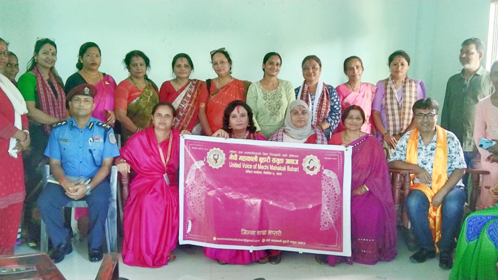 राजविराज, ३० साउन । महिला अधिकार र सामाजिक क्षेत्रमा क्रियाशिल महिलाहरुको भेलाले आज मेची—महाकाली बुहारी संयुक्त आवाज सप्तरी गठन गरेको छ ।वि.स.२०७७ भदौ १९ गते स्थापना भएको मेची महाकाली बुहारी संयुक्त आवाज देशको सबै जिल्लामा बिस्तार भइरहेको र ५३ औं जिल्लाका रुपमा आज सप्तरीमा समिति निर्माण...
