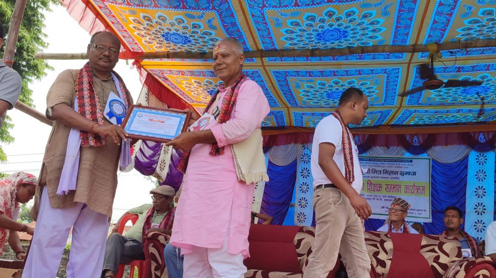 рд╡реГрдЬрдорд╛рди рддрд╛рдорд╛рдЩ – рд╡рд┐рд░реЗрдиреНрджреНрд░ рдмрдЬрд╛рд░, реирео рд╕рд╛рдЙрди ред рд╕рдкреНрддрд░реАрдХреЛ рдЕрдЧреНрдирд┐рд╕рд╛рдИрд░ рдХреГрд╖реНрдгрд╛рд╕рд╡рд░рди рдЧрд╛рдЙрдБрдкрд╛рд▓рд┐рдХрд╛ рд╡рдбрд╛ рдирдореНрдмрд░ рез рдЕрд╡рд╕реНрдерд┐рдд рд╢реНрд░реА рдард╛рдХреБрд░рдЬреА рдорд╛рдзреНрдпрдорд┐рдХ рд╡рд┐рджреНрдпрд╛рд▓рдпрдХрд╛ рд╢рд┐рдХреНрд╖рдХрд╕рд╣рд┐рдд рджрд░реНрдЬрдиреМрдВ рд╡реНрдпрдХреНрддрд┐ рд╕рдореНрдорд╛рдирд┐рдд рднрдПрдХрд╛ рдЫрдиреН ред рдорд╛рдзреНрдпрдорд┐рдХ рд╡рд┐рджреНрдпрд╛рд▓рдп рдЬрдгреНрдбреЛрд▓рдмрд╛рдЯ реирежрелрел рд╕рд╛рд▓рдорд╛ рдПрд╕рдПрд▓рд╕реА рдЙрддрд┐рд░реНрдг рд╡рд┐рджреНрдпрд╛рд░реНрдереАрджреНрд╡рд╛рд░рд╛ рдЧрдард┐рдд рд╢реНрд░реА рдард╛рдХреБрд░рдЬреА рдорд┐рддреНрд░ рдорд┐рд▓рди...