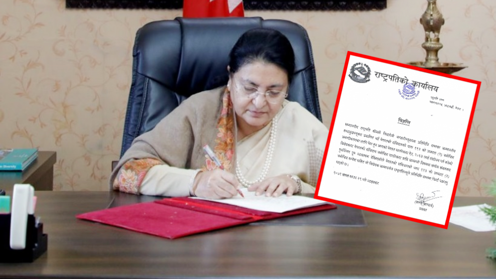 рдХрд╛рдардорд╛рдбреМрдБ ред рд░рд╛рд╖реНрдЯреНрд░рдкрддрд┐ рд╡рд┐рджреНрдпрд╛рджреЗрд╡реА рднрдгреНрдбрд╛рд░реАрд▓реЗ рдирд╛рдЧрд░рд┐рдХрддрд╛ рд╡рд┐рдзреЗрдпрдХ рдлрд┐рд░реНрддрд╛ рдЧрд░реНрдиреБрднрдПрдХреЛ рдЫ ред рд░рд╛рд╖реНрдЯреНрд░рдкрддрд┐ рднрдгреНрдбрд╛рд░реАрд▓реЗ рд╡рд┐рдзреЗрдпрдХрдорд╛ рдкреБрдирд░реНрд╡рд┐рдЪрд╛рд░ рдЧрд░реНрди рдЖрд╡рд╢реНрдпрдХ рднрдПрдХреЛ рднрдиреНрджреИ рд╡рд┐рдзреЗрдпрдХ рдлрд┐рд░реНрддрд╛ рдЧрд░реНрдиреБрднрдПрдХреЛ рд╡рд┐рдЬреНрдЮрдкреНрддрд┐рдорд╛ рдЙрд▓реНрд▓реЗрдЦ рдЫ редрдЖрдЗрддрдмрд╛рд░ рд╕рд╛рдБрдЭ рдЙрдХреНрдд рд╡рд┐рдзреЗрдпрдХ рдлрд┐рд░реНрддрд╛ рдЧрд░реЗрдХреЛ рд░рд╛рд╖реНрдЯреНрд░рдкрддрд┐ рдХрд╛рд░реНрдпрд╛рд▓рдпрдХрд╛ рдкреНрд░рд╡рдХреНрддрд╛ рд╕рд╛рдЧрд░ рдЖрдЪрд╛рд░реНрдпрд▓реЗ рдЬрд╛рдирдХрд╛рд░реА рджрд┐рдиреБрднрдпреЛ ред...