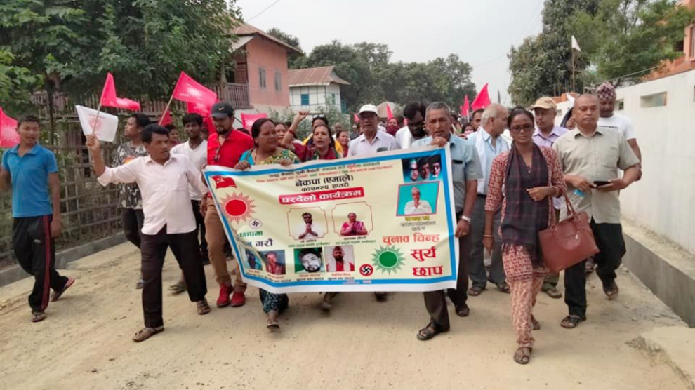 कञ्चनरुप, बैशाख १६ गते । सप्तरीको कञ्चनरुप नगरपालिकामा नेपाल कम्युनिष्ट पार्टी एमालेको चुनावी रौनकता बढेको छ । उम्मेदवारी मनोनयन दर्ता भएसंगै नाचगान सहितको र्रयालीले उम्मेदवारहरुलाई लिइएर घरदैलो कार्यक्रम शुरु गरेको छ ।यसैक्रममा शुक्रवार वडा नम्वर १२ मा पार्टीका केन्द्रिय सदस्यहरु तथा...