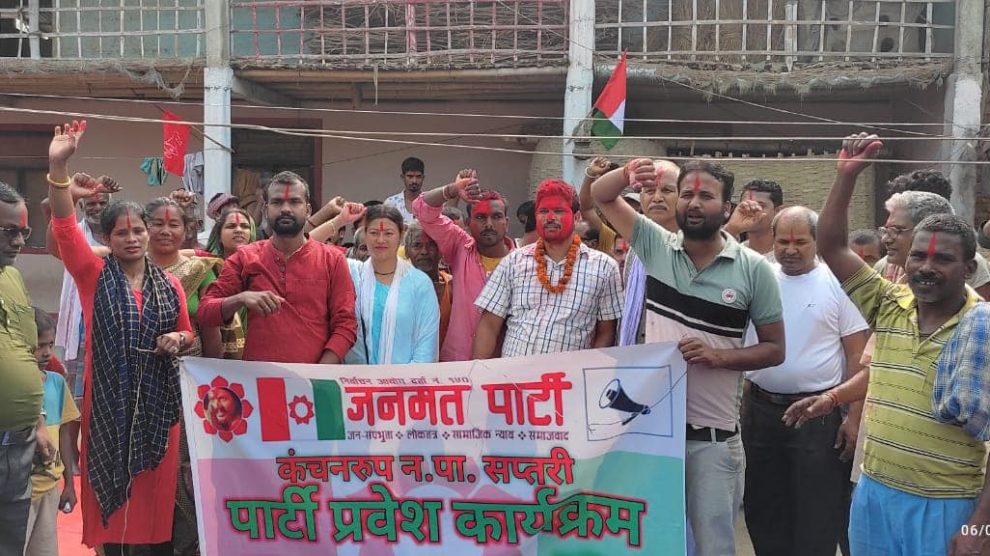 कञ्चनरुप, २३ चैत । कञ्चनरुप नगरपालिका वडा नम्बर ४ भोरहा जगतपुरमा नेपाली काँग्रेस पार्टीका क्रियाशिल सदस्यसहित पार्टी परित्याग गरी सयौंको संख्यामा जनमत पार्टीमा प्रवेश गरेका छन् ।बुधबार जनमत पार्टी कञ्चनरुपले आयोजना गरेको पार्टी प्रवेश कार्यक्रमका बीच नेपाली काँग्रेसका क्रियाशिल सदस्य कमल...