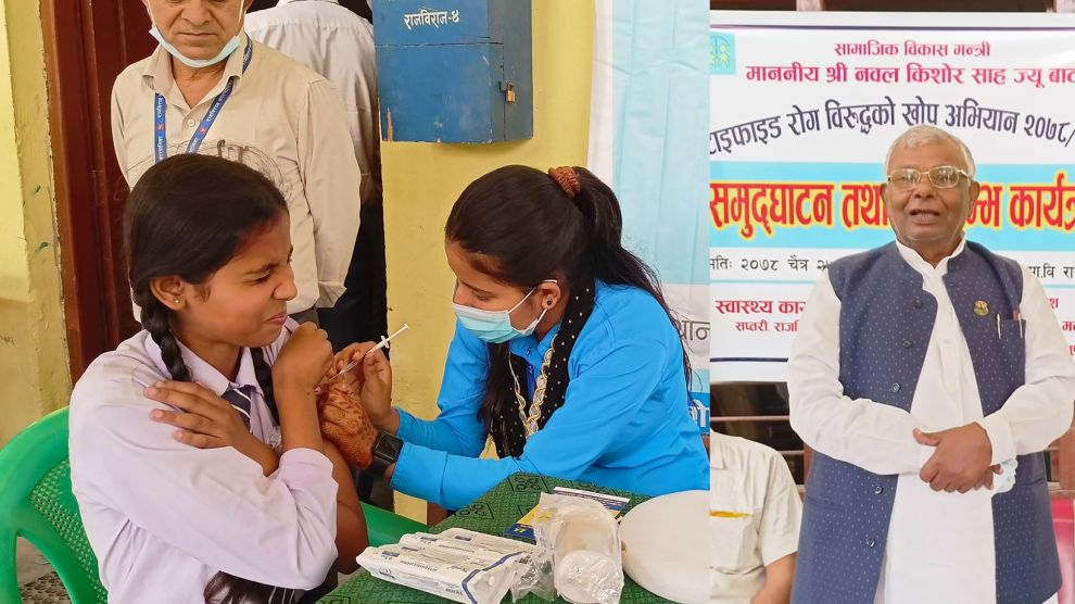 कञ्चनरुप (सप्तरी), २५ चैत्र । सप्तरीमा १५ महिनादेखि १५ वर्षमुनिका बालबालिकालाई टाइफाइड विरुद्धको खोप अभियानको शुभारम्भ भएको छ ।सप्तरीको राजविराज स्तिथ केशो अनिरुद्धबत्ती माध्यमिक विद्यालयमा आयोजित एक कार्यक्रमबीच मधेश प्रदेशका सामाजिका विकास मन्त्री नवल किशोर साहले टाईफाइड विरुद्धको खोप...
