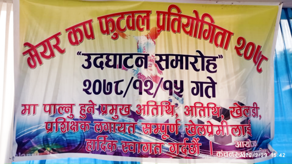 कञ्चनरुप, १८ चैत । सप्तरीको कञ्चनरुप नगरपालिकाद्वारा आयोजित प्रथम मेयर कप फुटबल प्रतियोगिताको चौथो दिन शुक्रवार वडा नम्बर ८ विजयी भएको छ ।कञ्चनरुप नगरपालिकाको वडा नम्बर ८ र १० बीच भएको खेलमा दुबै टिमले खेल अवधिभर कुनै पनि गोल गर्न नसकेपछि ट्राइवेकरमा वडा नम्बर ८ विजयी भएको हो ।वडा नम्बर ८...
