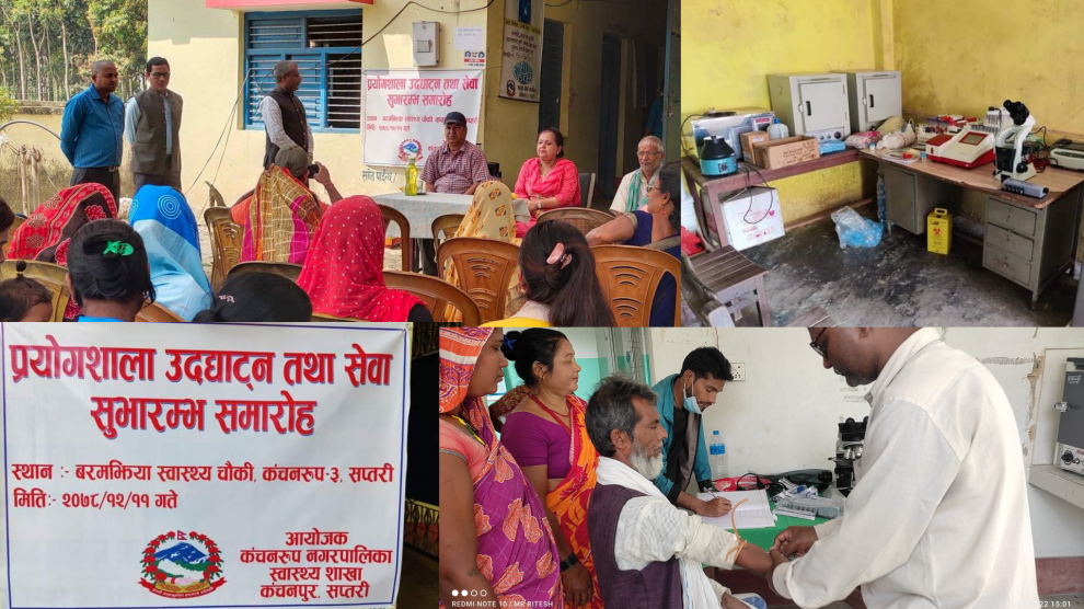 कञ्चनरुप, ११ चैत । सप्तरीको कञ्चनरुप नगरपािलका वडा नम्बर ३ स्थित रहेको बरमझिया स्वास्थ्य चौकीमा शुक्रबार प्रयोगशालाको उदघाटन तथा सेवा सुभारम्भ गरिएको छ ।प्रयोगशालामा रगत, पिसाव, सुगर , मुटु रोग र ब्लड प्रेसर लगायका विरामीहरुको परीक्षण गरी उपचार हुने जनाइएको छ ।स्वास्थ्य शाखाका स इन्चार्ज...