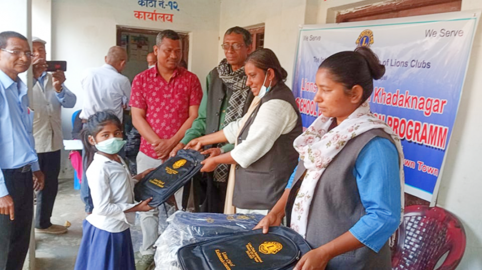 राजविराज, २९ फागुन । लायन्स क्लब अफ खडकनगर सप्तरीले आइतबार भवानी प्रसाद सकल प्रसाद रामप्राद जनता माध्यमिक विद्यालय कल्याणपुरका विद्यार्थीहरुलाई स्कूल ब्याग वितरण गरेको छ।लायन्स क्लब खडक नगरका सल्लाहकार एंव मधेश प्रदेशका आन्तरिक मामिला तथा सञ्चार राज्यमन्त्री रुबी कुमारी कर्णले भसराज मावि...