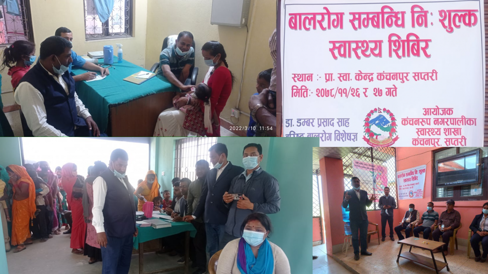 उत्तम आचार्य / कञ्चनरुप, २६ फागुन । सप्तरीको कञ्चनरुप नगरपालिका स्वास्थ्य शाखा कञ्चनपुरको आयोजनामा बिहीबार प्राथमिक स्वास्थ्य केन्द्र कञ्चनपुरमा दुई दिने बाल रोग सम्बन्धि निशुल्क स्वास्थ्य परीक्षण सुरु भएको छ ।सो कार्यक्रममा बोल्दै नगर प्रमुख बसन्त कुमार मिश्रले बालबालिकाको स्वास्थ्यलाई...