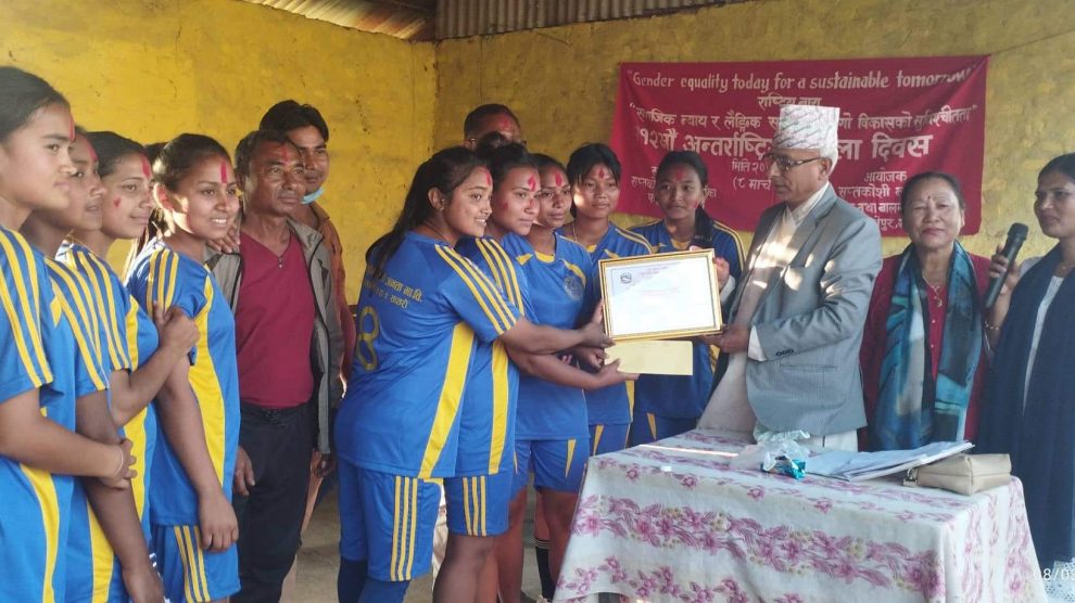 उत्तम आचार्य / कञ्चनरुप, २४ फागुन । सामाजिक न्याय र लैङ्गिक समानता ; दिगो विकासको सुनिश्चितता भन्ने नाराका साथ कञ्चनरुप नगरपालिका सामाजिक विकास शाखा, महिला तथा बालबालिका शाखाले मंगलवार नगरपालिकाको प्राङ्गणमा ११२ औं अन्तराष्ट्रिय महिला दिवश विभिन्न कार्यक्रम गरी भव्य रुपमा सम्पन्न गरेको छ...