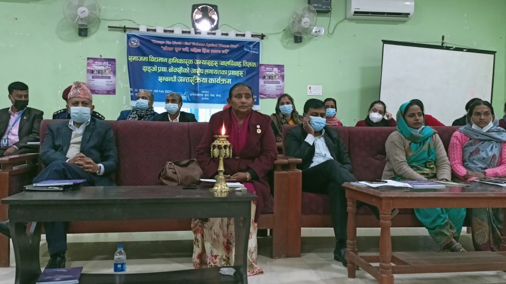 राजविराज, २६ माघ । समाजमा हुने हानिकारक परम्परागत अभ्यासलाई अन्त्य गर्न आफैबाट सुरु गर्नु पर्ने एक कार्यक्रमका सहभागीहरूले बताएका छन् ।राष्ट्रिय महिला आयोगको आयोजना र इन्सेकको संयोजनमा बुधबार राजविराजमा आयोजित ‘समाजमा विद्यमान हानिकारक परम्परागत अभ्यास’ सम्बन्धी अन्तरक्रिर्या कार्यक्रमका...