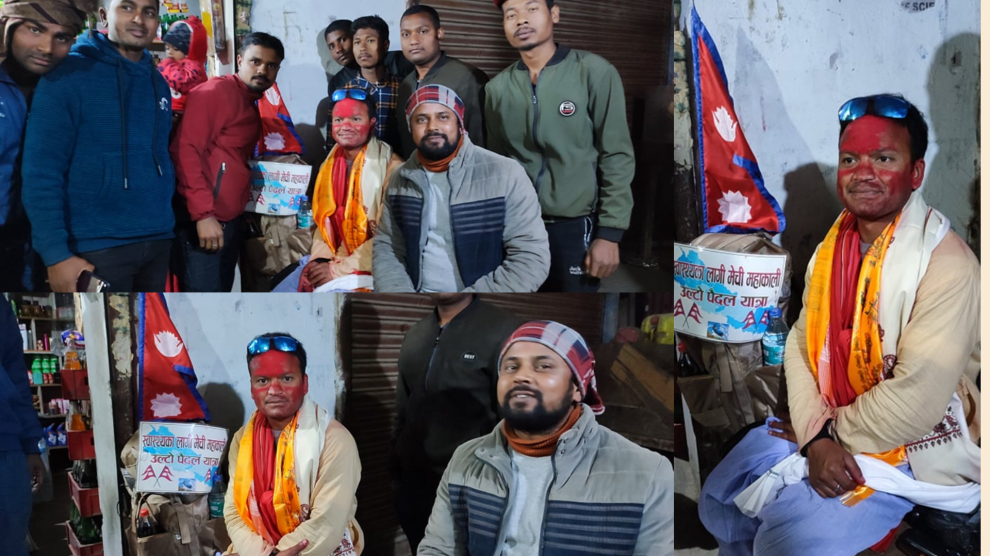 बृजमान तामाङ / विरेन्द्र बजार, २४ माघ । सप्तरीको अग्निसाईर कृष्णासवरन गाउँपालिका वडा नम्बर ४ विशाल चौकमा सोमबार मेची माहाकाली उल्टो पैदल यात्रामा रहेका ॠषि परियारलाई भब्य स्वागत गरिएको छ ।दशदिनको कठोर उल्टो पदयात्रा गरि साँझ विशाल चौक पुगेका ३० वर्षिय परियारलाई स्थानीयबासीहरुले खादा अविर...