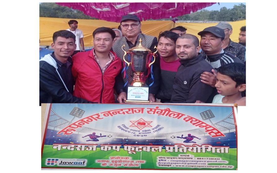 कञ्चनरूप, १७ फागुन । रूपनगर क्याम्पसको आयोजना तथा ‘जवाफ एडुकेसन्स’ र शगुन संग्रौला मुख्य प्रायोजक रहेको ‘नन्दराज कप’ फूटबल प्रतियोगिताको उपाधि महुली फुटबल क्लबले हात पारेको छ । कञ्चनरुप नगरपालिका वडा नम्बर १२ स्थित सुन्दरी खेल मैदानमा शनिबार सम्पन्न...
