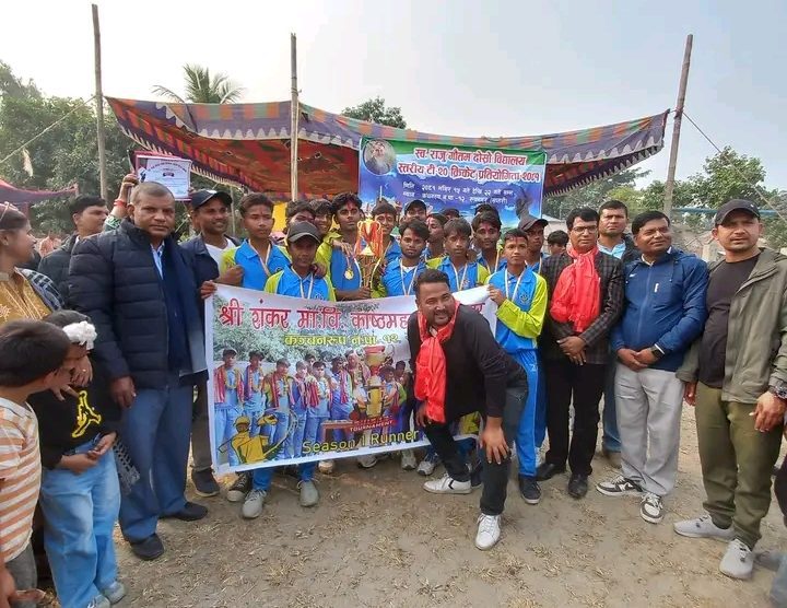 कञ्चनरूप ,२३ मंसिर । शंकर माध्यमिक विद्यालय रुपनगर सप्तरीले स्व. राजु गौतम दोस्रो विद्यालय स्तरीय टि-२० क्रीकेट प्रतियोगिताको उपाधि जित्न सफल भएको छ ।आइतबार सप्तरीको कञ्चनरुप नगरपालिका-१२ स्थित सुन्दरी खेल मैदानमा सम्पन्न फाइनल खेलमा बालबोध स्केन्ड्री स्कुल कञ्चनपुरलाई १ सय ३९ रनले पराजित...