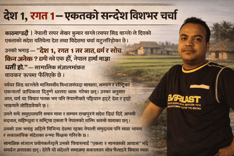 मधेसको पहिचान, संस्कृति र जन्मभूमिप्रतिको प्रेमलाई केन्द्रमा राख्दै र्यापर सिड वाग्लेले ‘मधेश मेरो पहिचान’ सार्वजनिक गरेका छन्।उत्सव आचार्यकञ्चनरुप...
