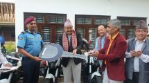 समाचार • समाज १ नम्बर प्रदेश प्रहरी कार्यालय बिराटनगरलाई मोटरसाईकल हस्तान्तरण ५ आश्विन २०७९, बुधबार २१:०५