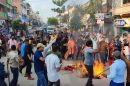राजविराजमा राष्ट्रपति भण्डारीको पुतला दहनको क्रममा प्रहरी र प्रदर्शनकारी बीच घम्साघसी