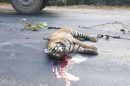 पथलैया सडकखण्डमा कारको ठक्करबाट पाटे बाघको मृत्यु